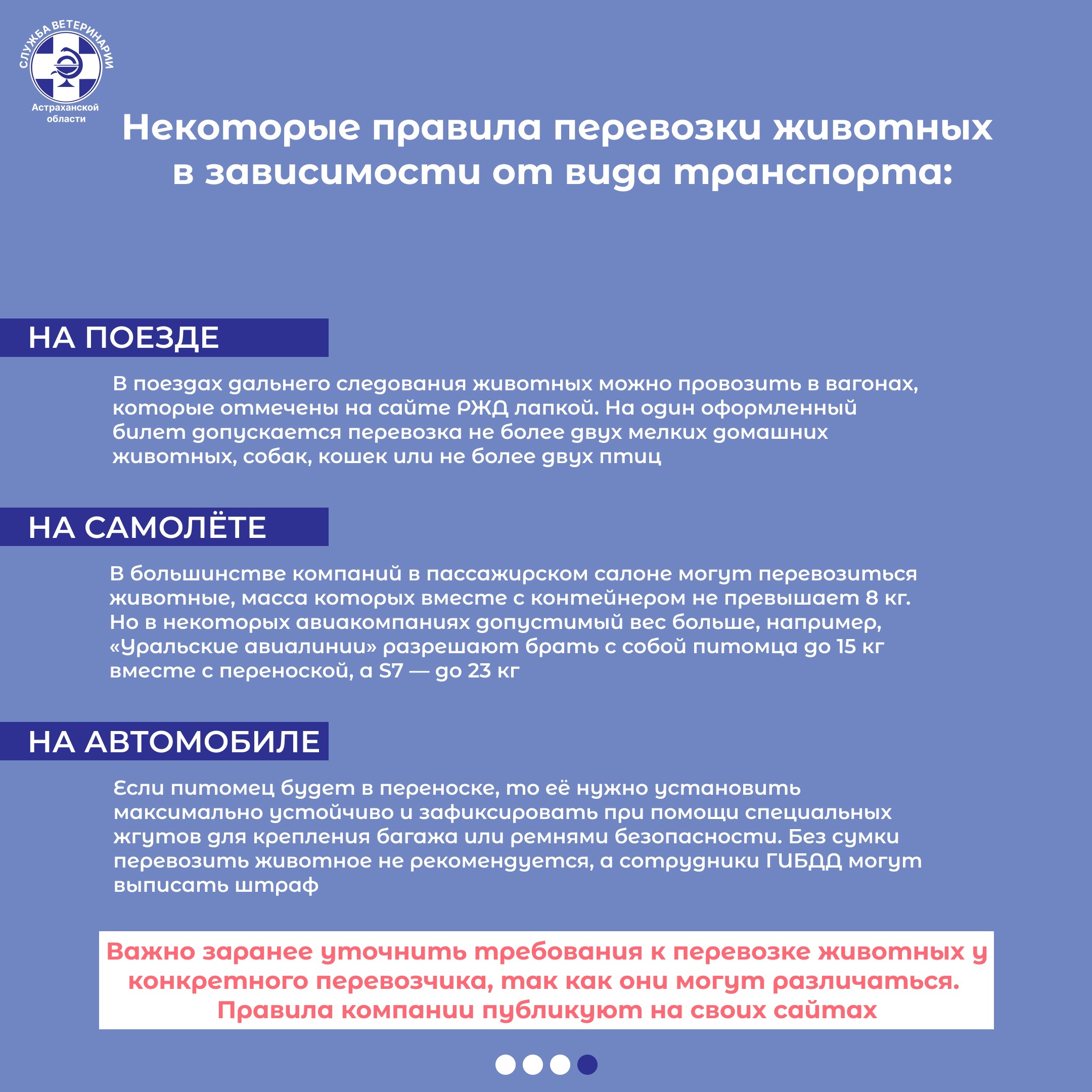 Некоторые правила перевозки животных в зависимости от вида транспорта: